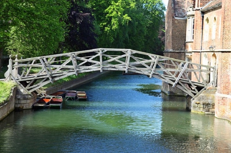 Other Queens’ College sites to visit include the wooden Mathematical Bridge. This 1902 reconstruction leads over the Cam to the lovely college gardens, and is so called because it was built without nails, relying for its strength on meticulous calculation.